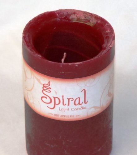 A hot apple pie scented spiral burning self filling candle. The self-filling candle is first lit, using the horizontal wick on the upper edge. The candle burns for 3.5 hours around the hollow center allowing the wax to drain inward, filling in the center creating a new candle around the standing wooden wick. To prevent any spilling, the candle self extinguishes when the inner wax is equal to the outer edge. After the wax has cooled in the center of the candle trim the wooden wick to 1/4 of an inch and light. The resulting pillar candle will burn for over 40 hours. Due to it's unique design Spiral Light candles have more surface area for it size then any other candle in the world. This allows spiral light candles to have a much greater fragrance than other pillar candles. Please be sure to read all warning labels and remove product labels before lighting a Spiral Light Candle.